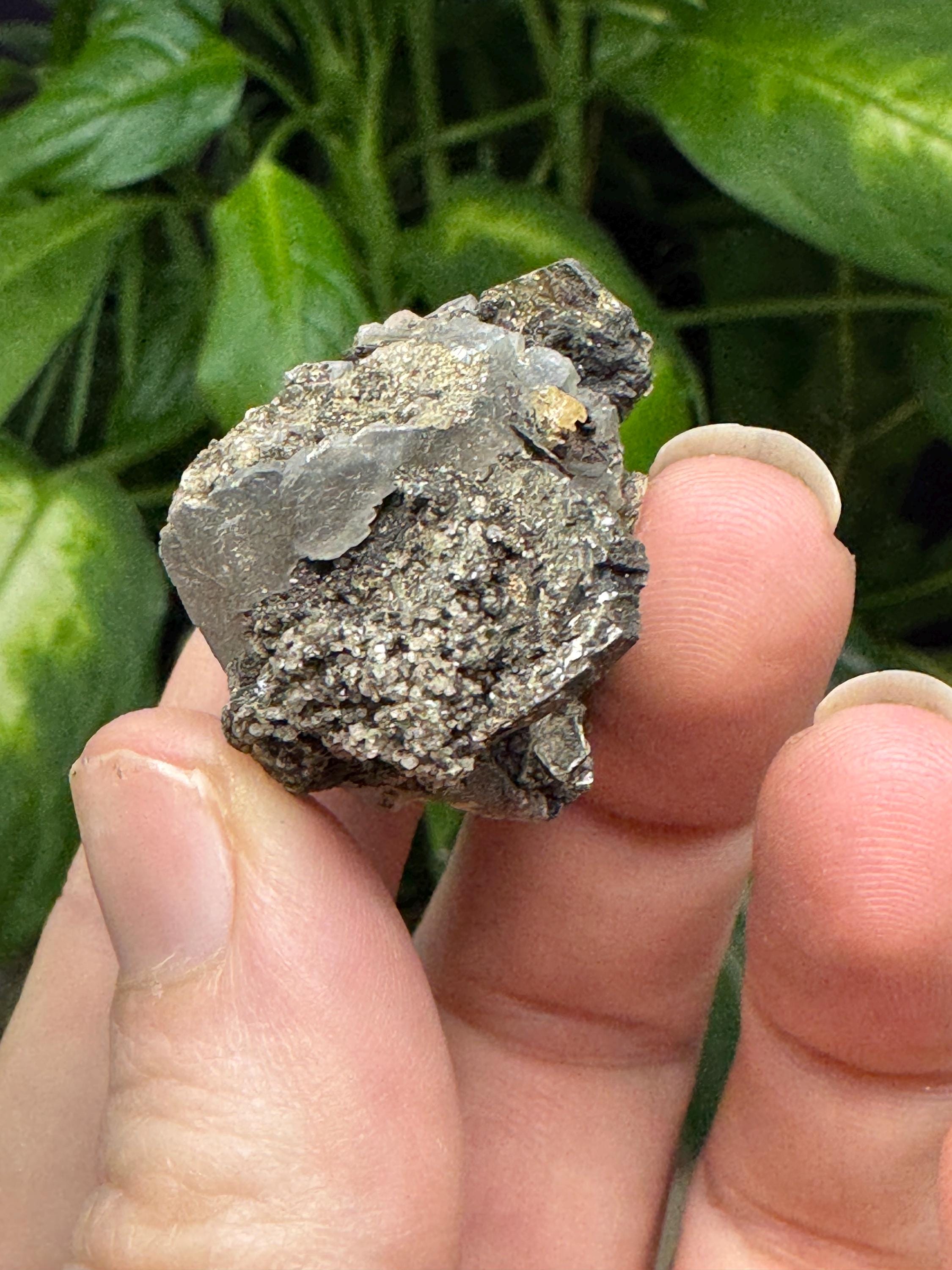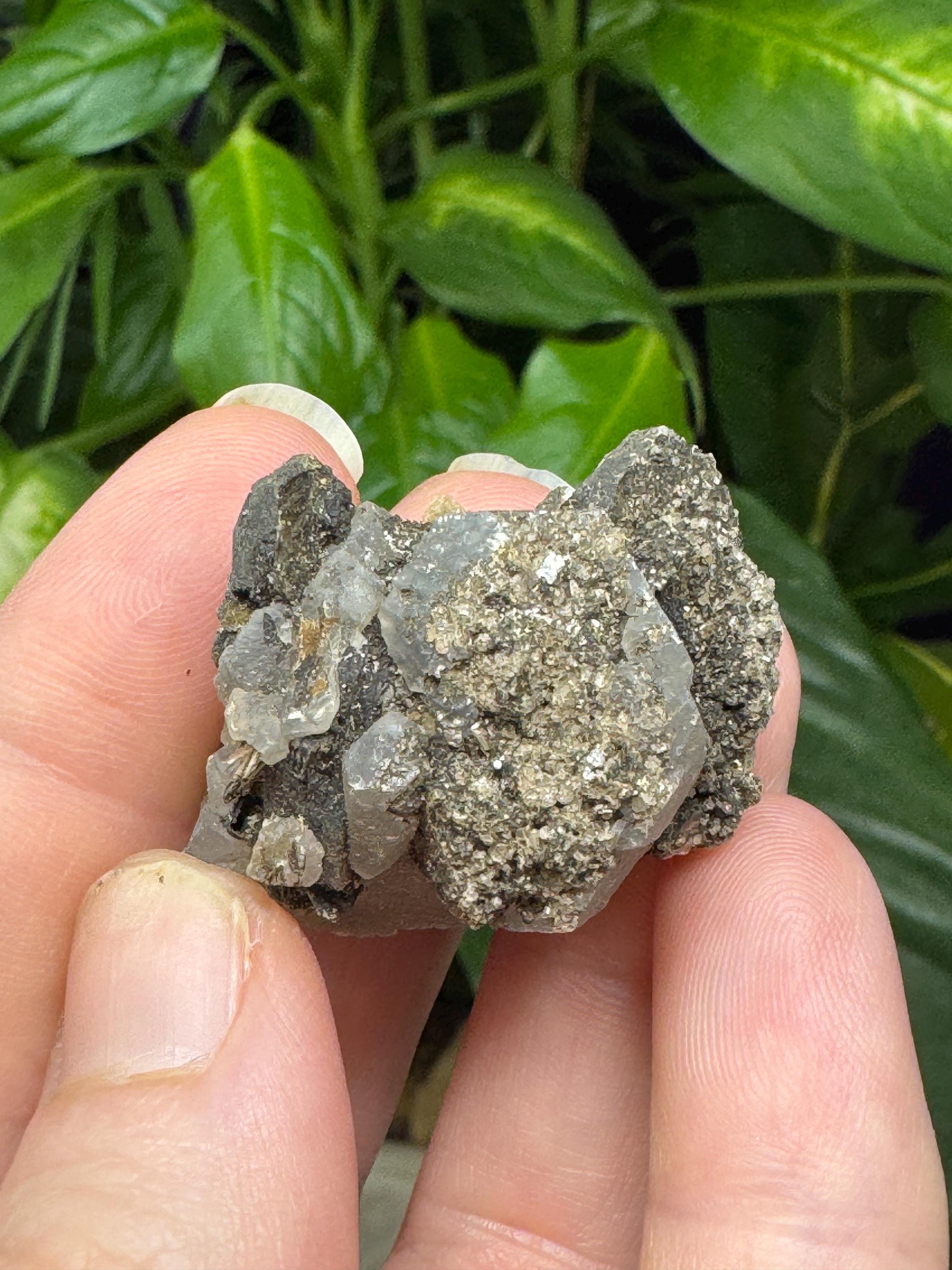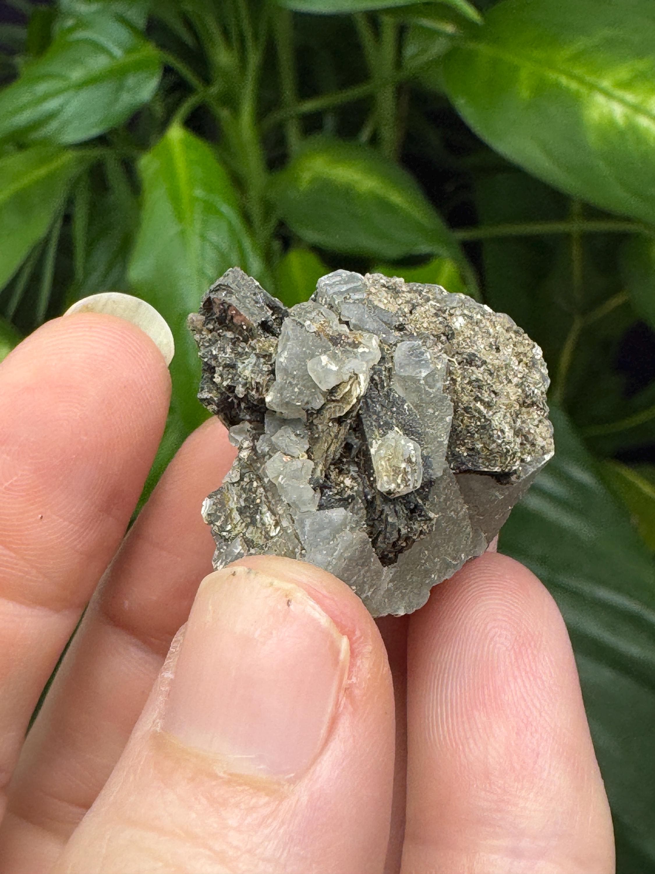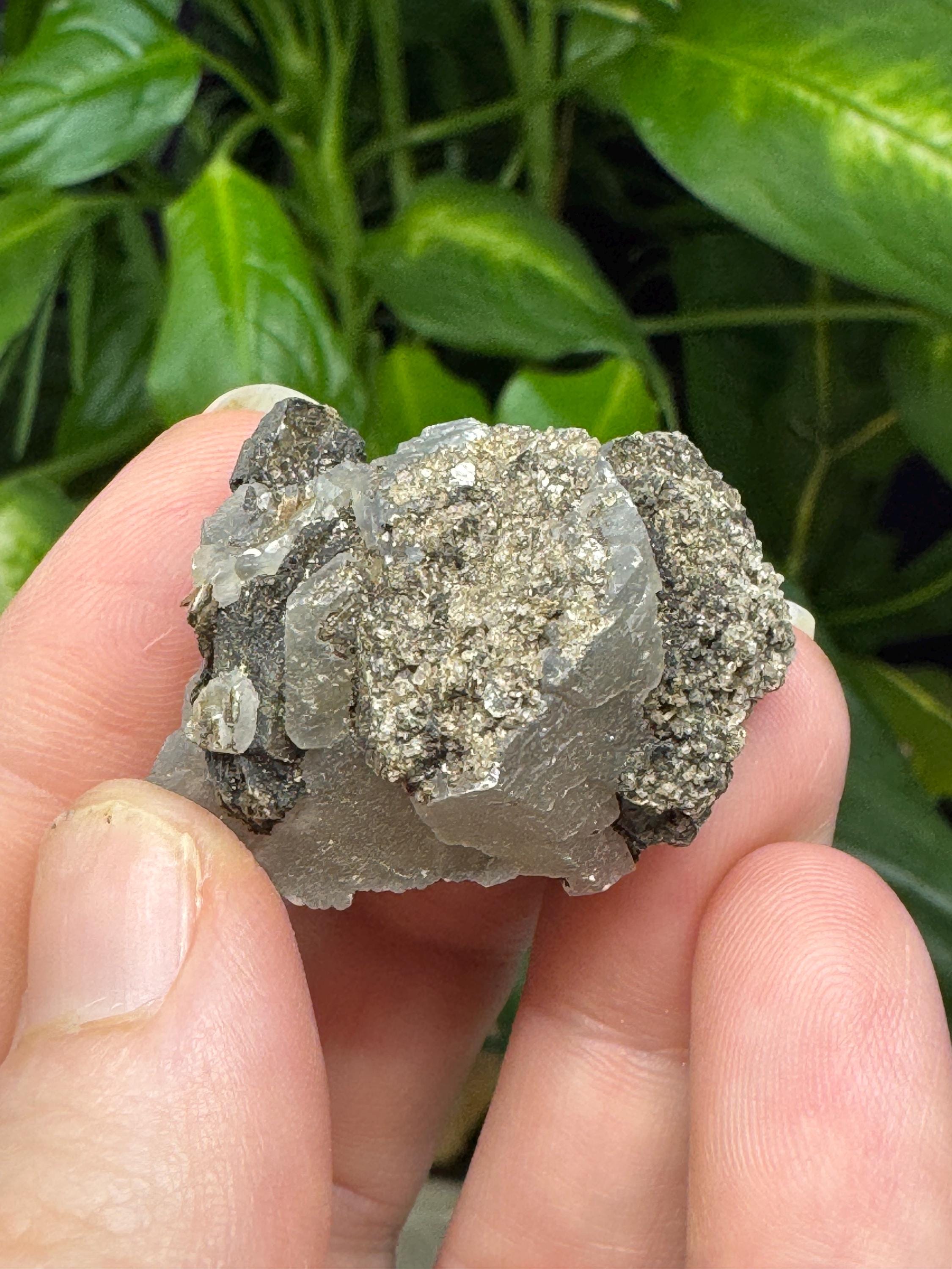 Calcite and Mica from North American Emerald Mine, Hiddenite, NC. Collected by Terry Ledford. This piece has awesome contrast and aesthetics.3 x 2.75cm