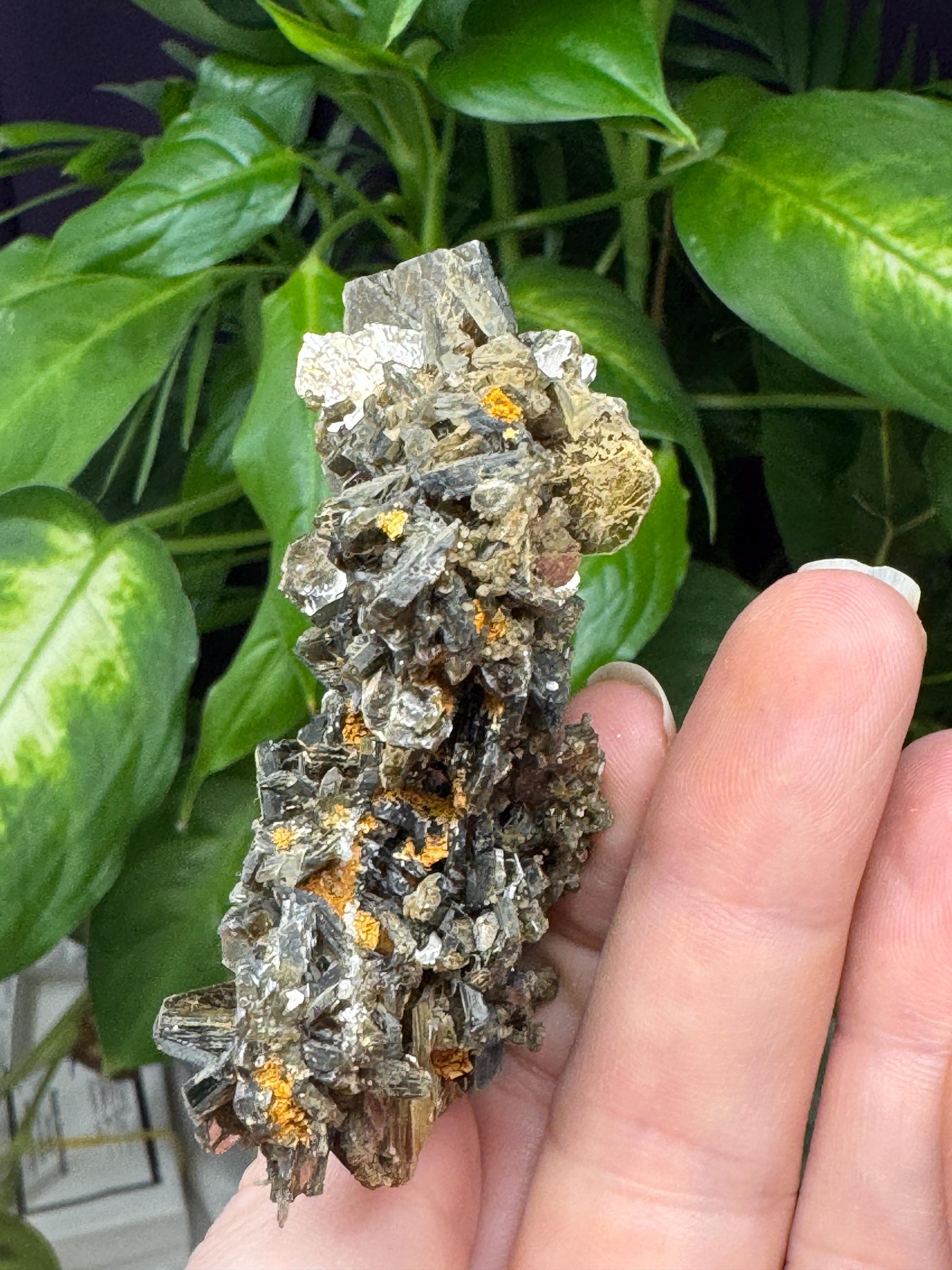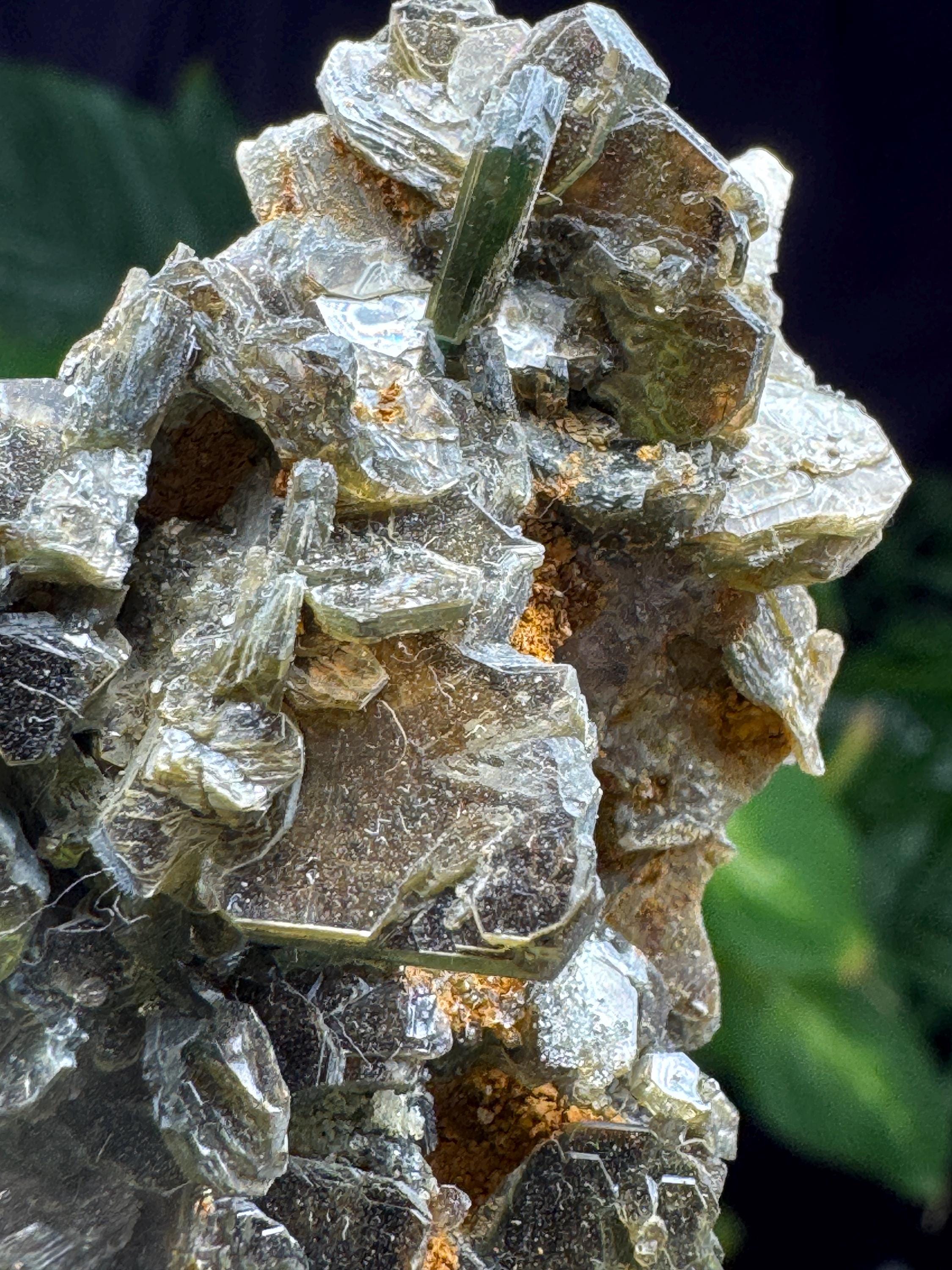 Green Mica Cluster from NAEM in Hiddenite NC. Collected by Terry Ledford. This cluster has great luster and aesthetics.Comes with collection card. 7 x 6.25cm