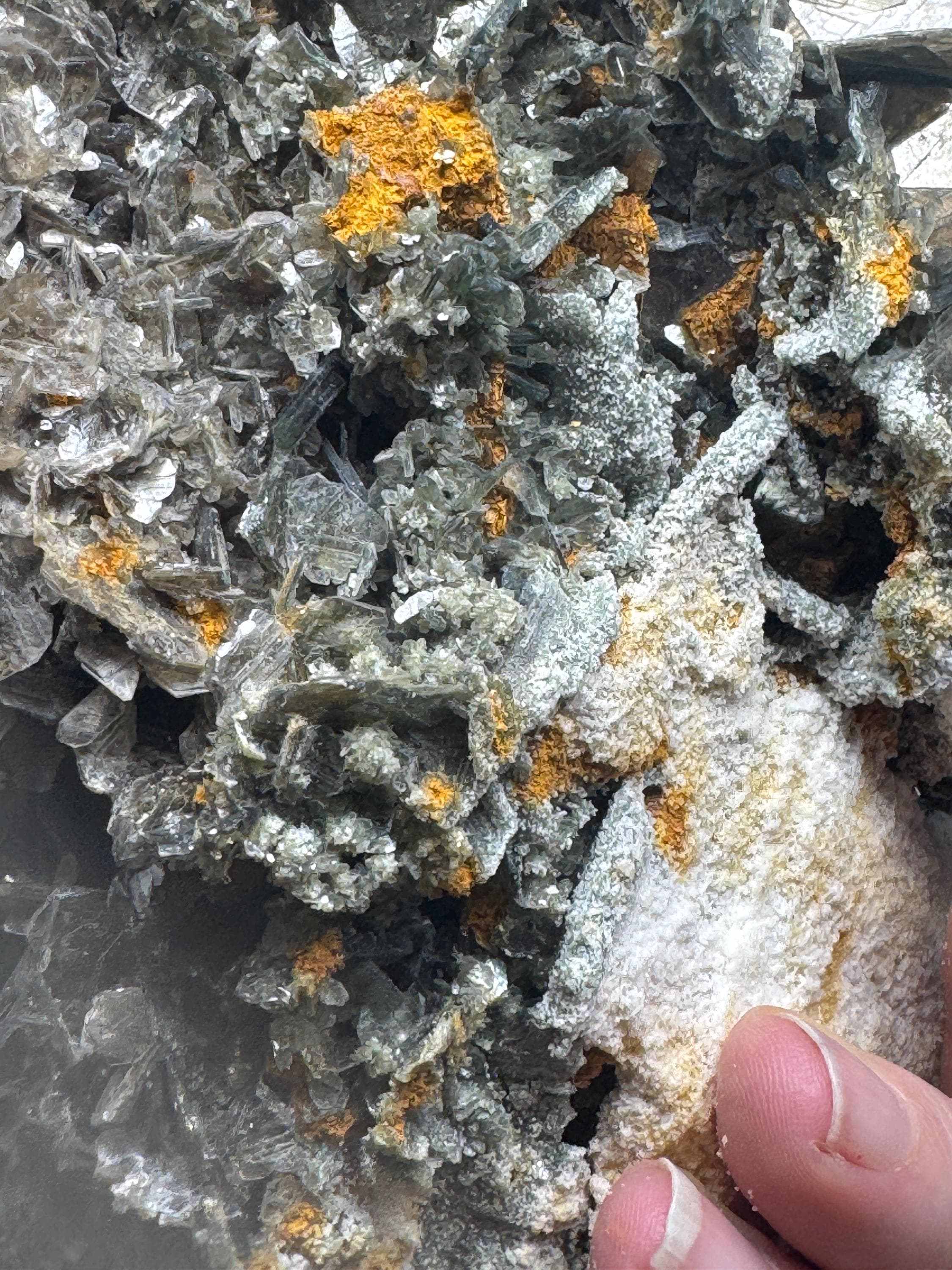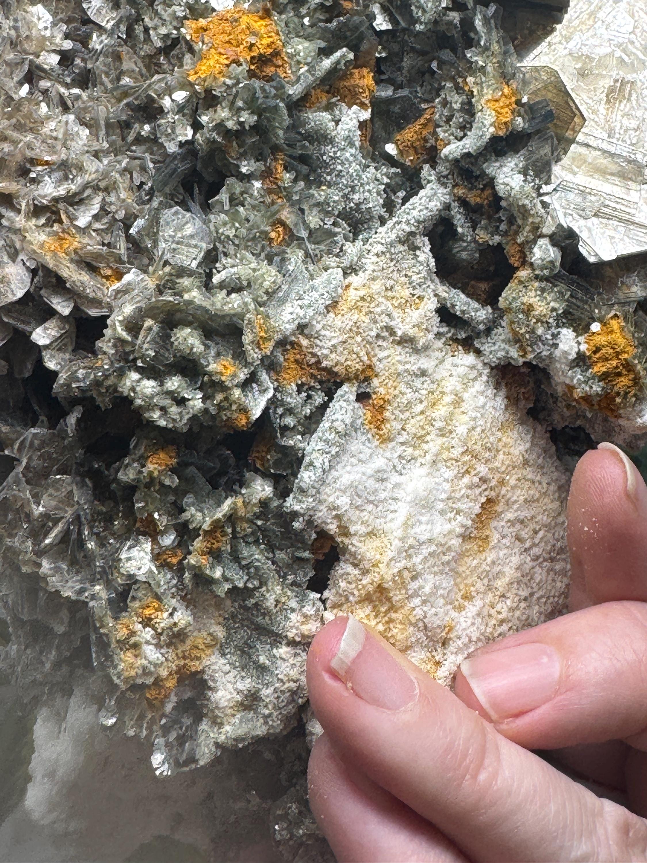 Green Mica and Albite from the, now permanently closed, North American Emerald Mine in Hiddenite, NC. Great Cabint specimen. All minerals come with a collection card. 17 x 12.5cm