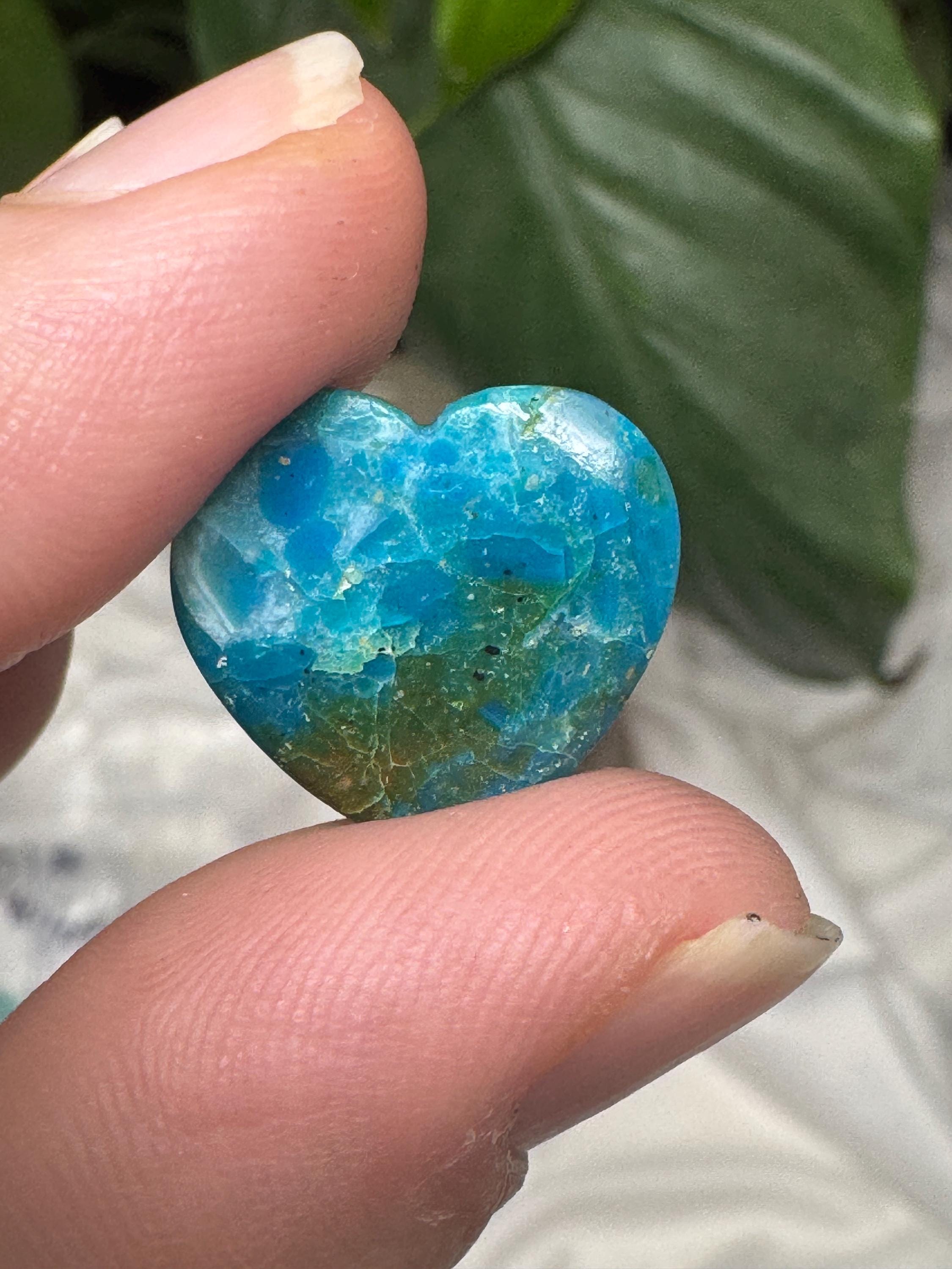 Heart shaped Gem Silica Cabochon from the Inspiration Mine in Arizona. Great piece with amazing color and contrast. Most likely collected in the 1990s. 8.25ct
