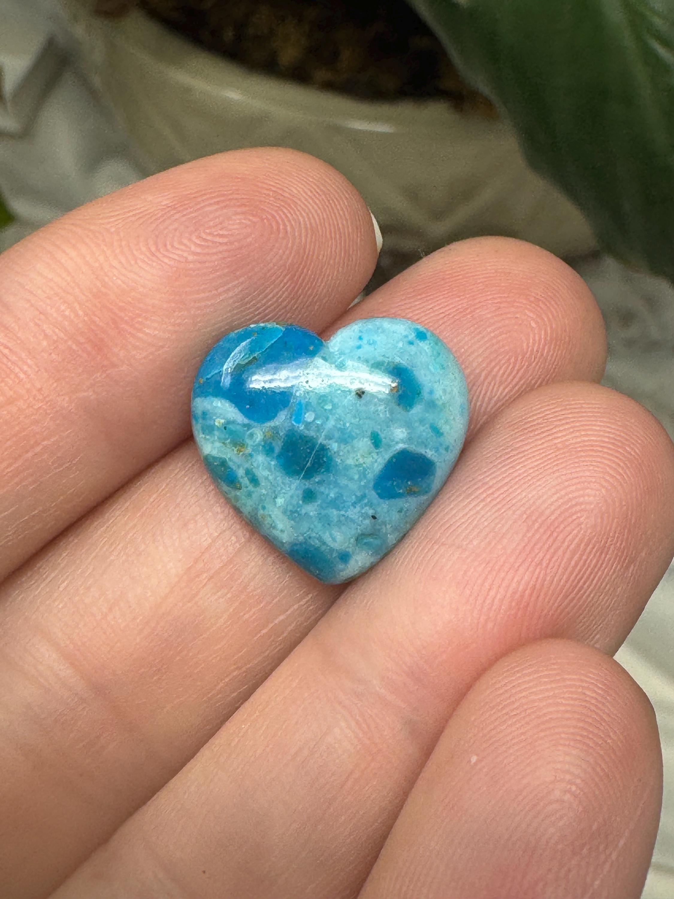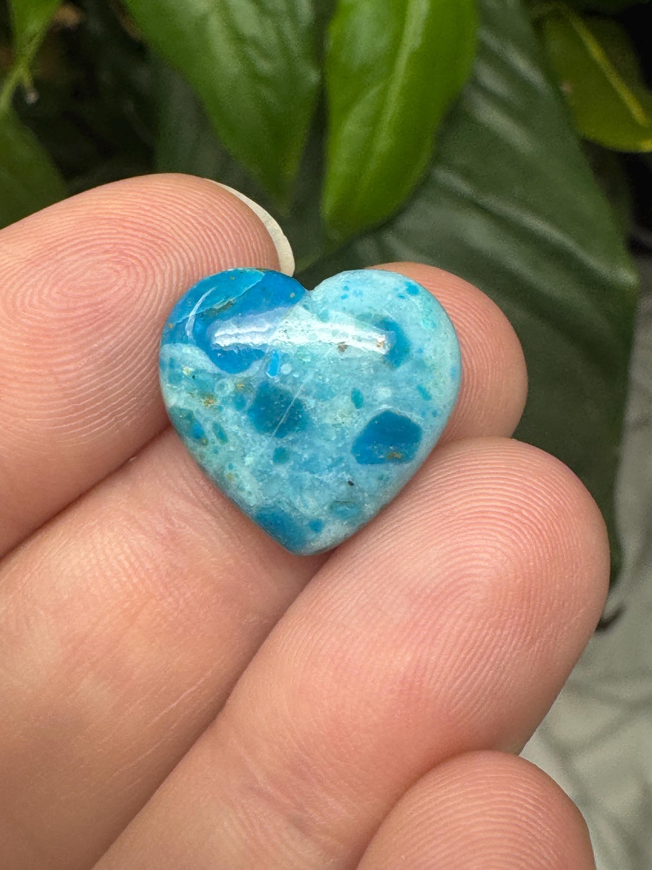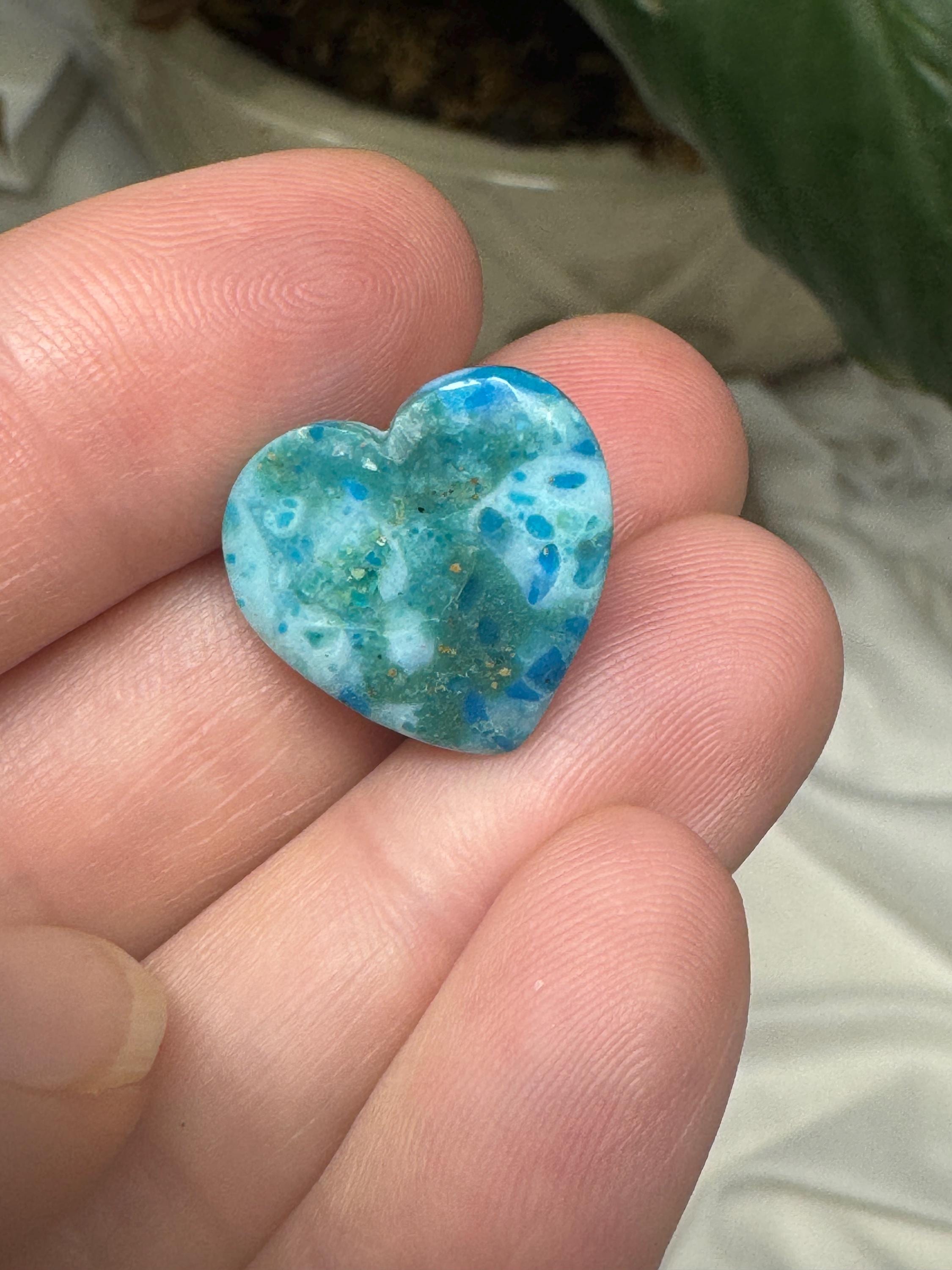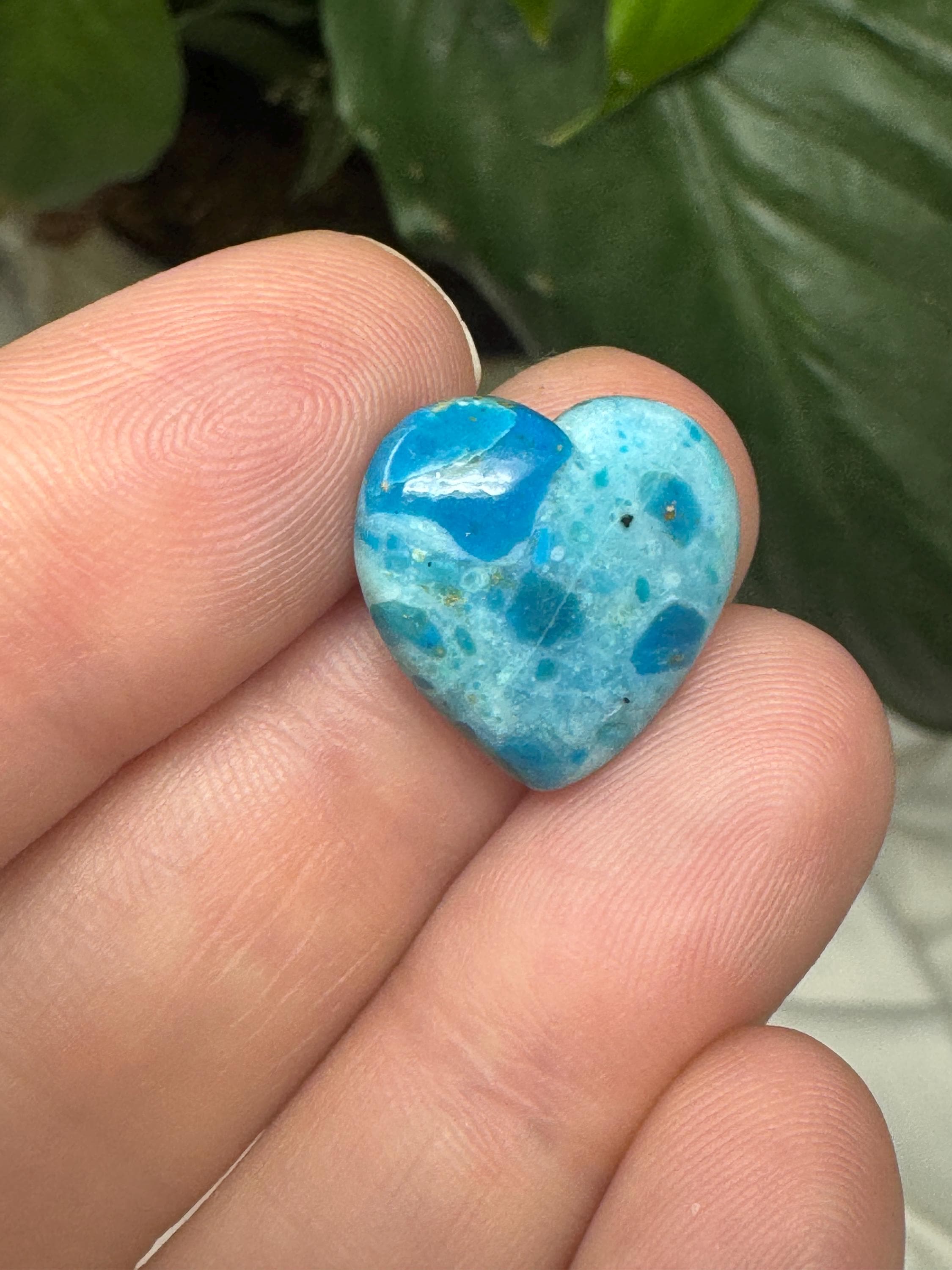 Heart shaped Gem Silica Cabochon from the Inspiration Mine in Arizona. Great piece with amazing color and contrast. Most likely collected in the 1990s. 8.85ct