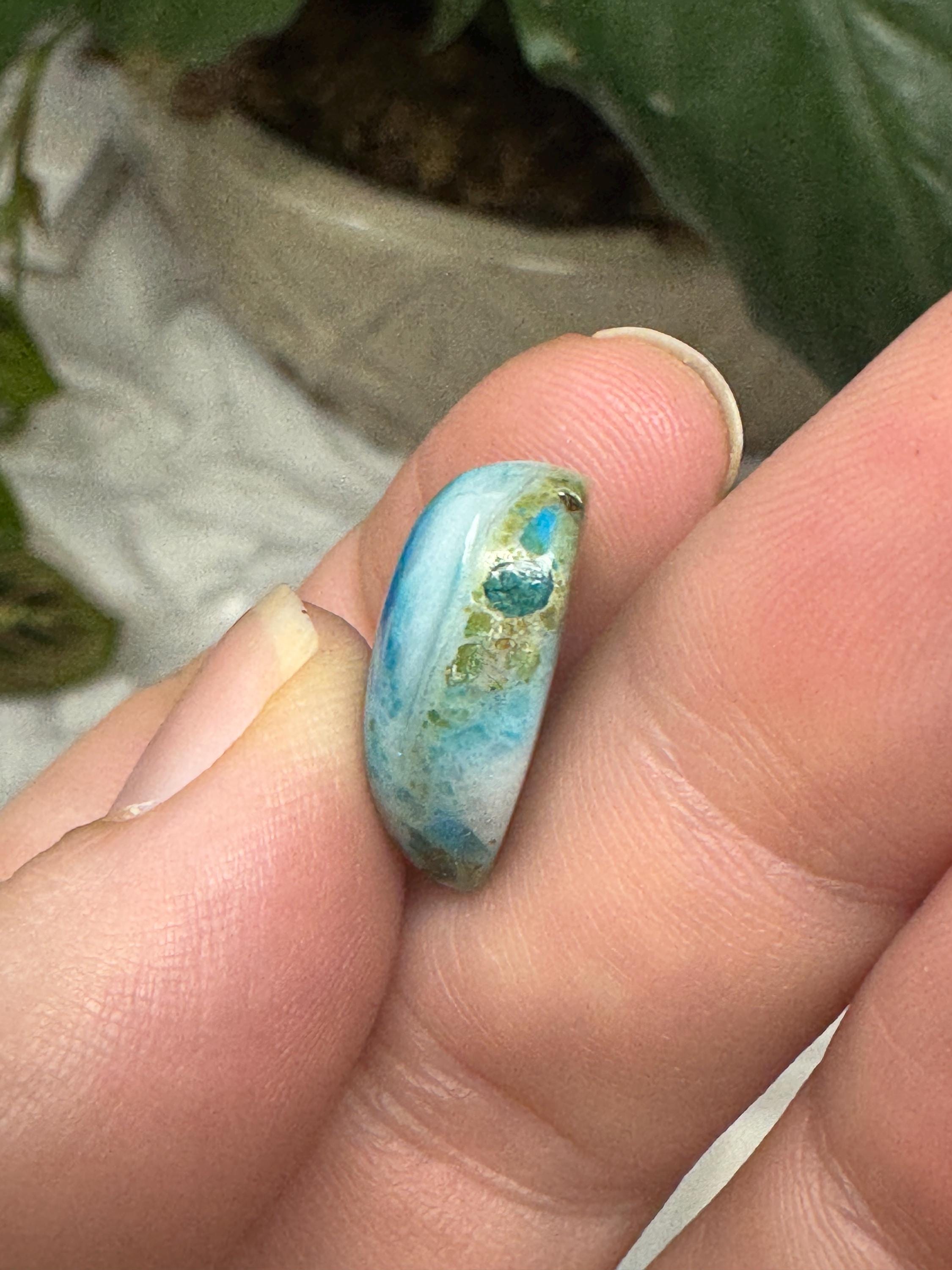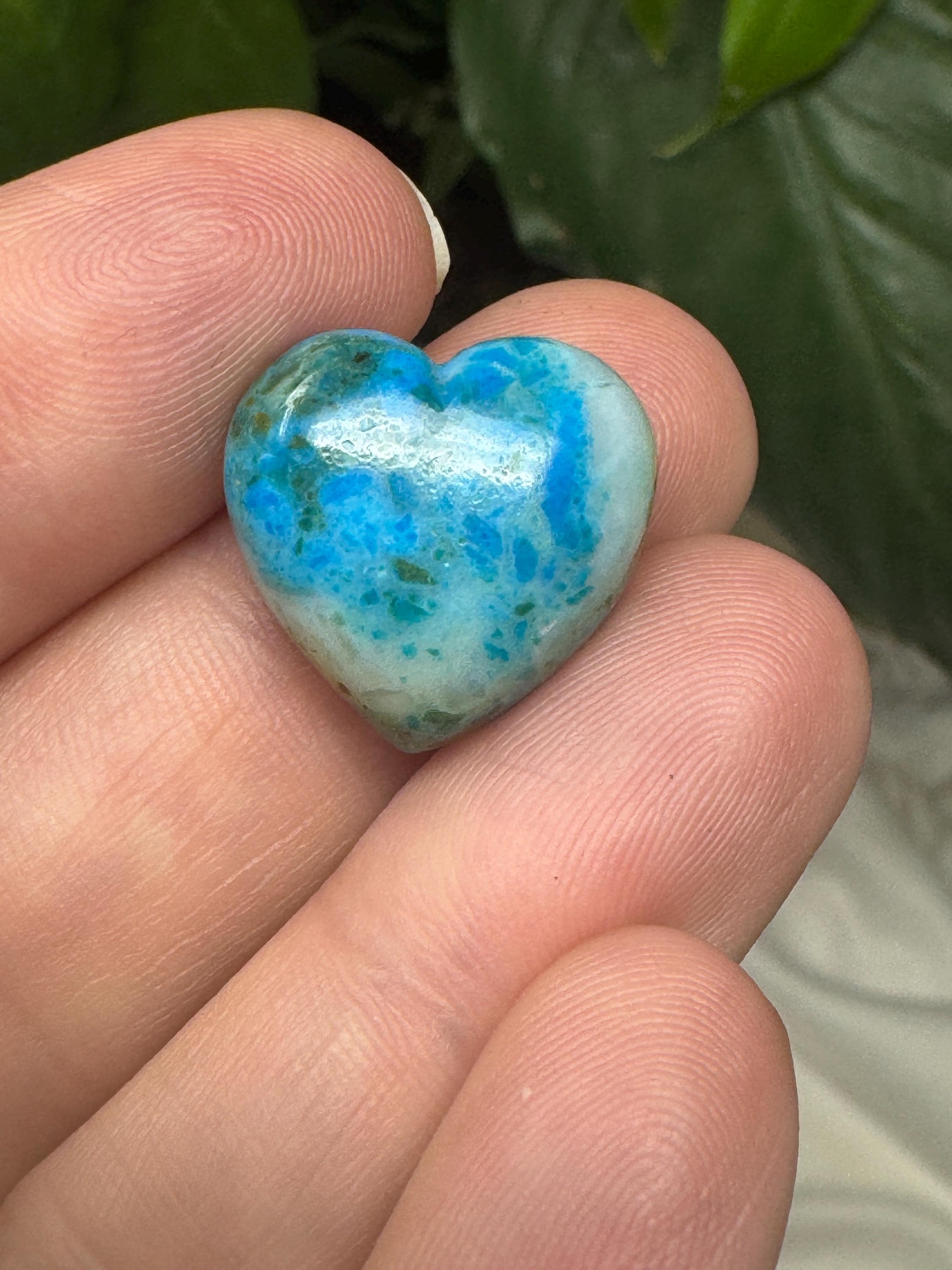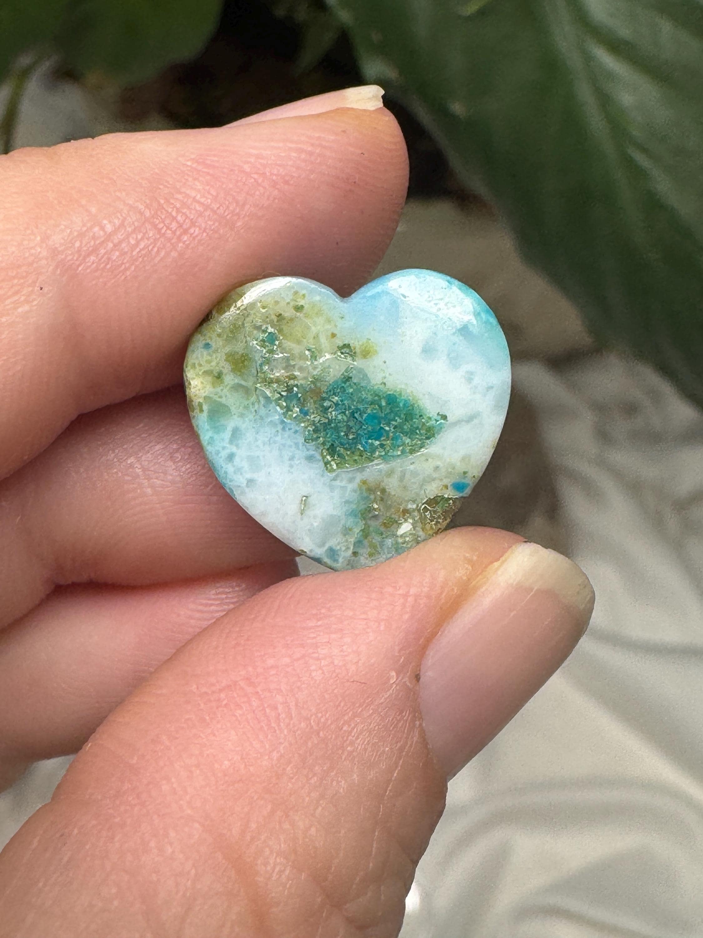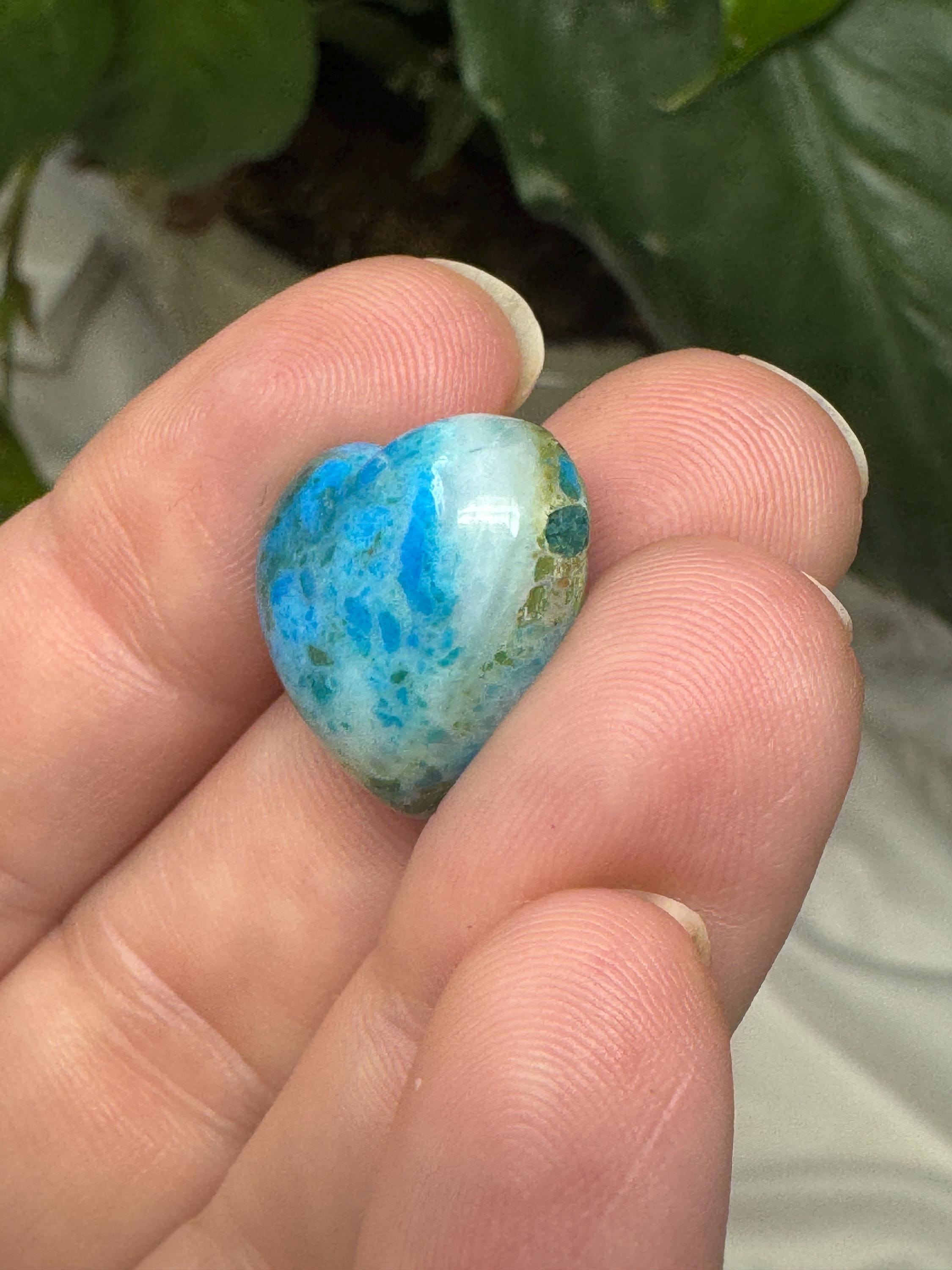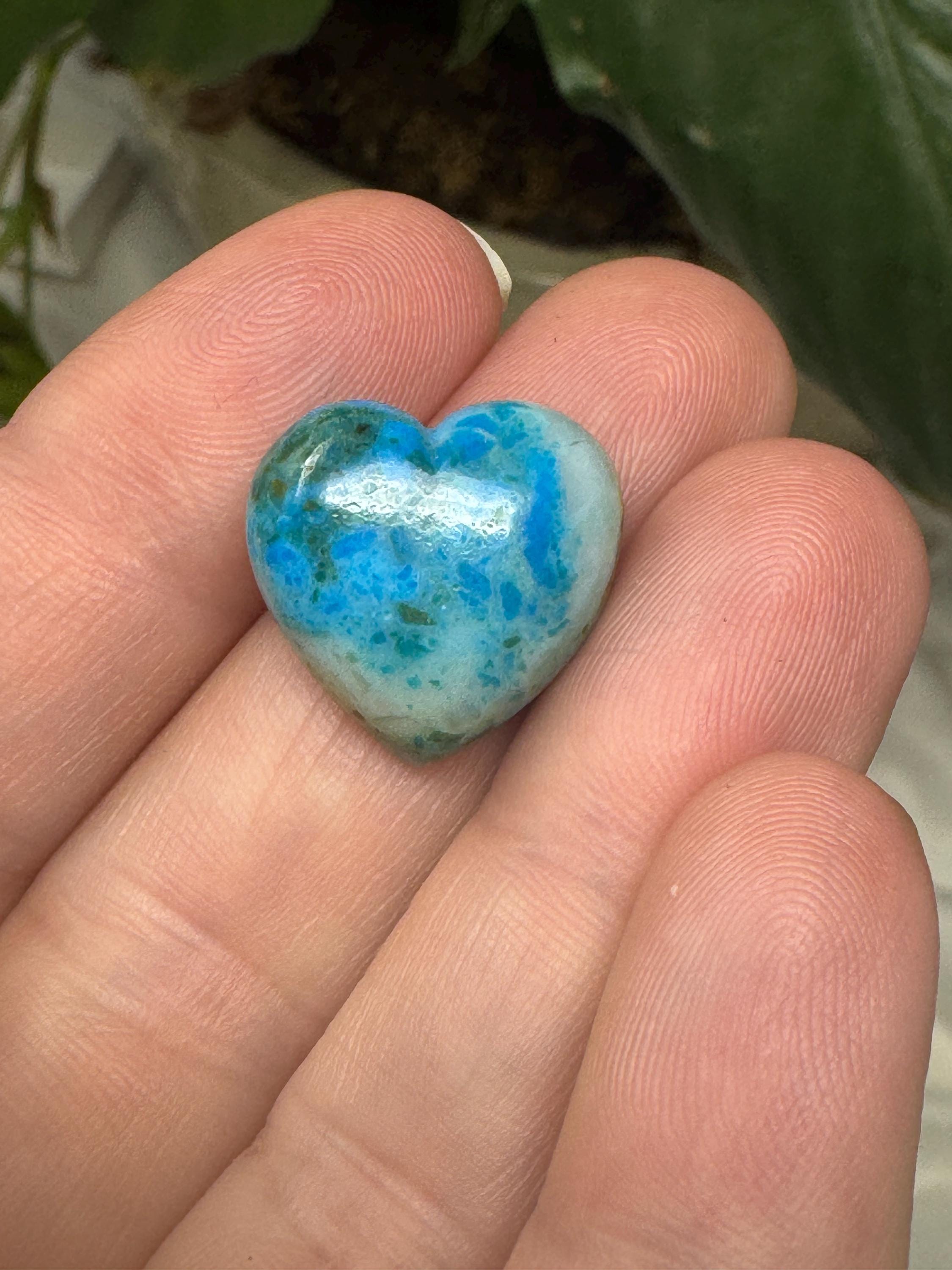 Heart shaped Gem Silica Cabochon from the Inspiration Mine in Arizona. Great piece with amazing color and contrast. Most likely collected in the 1990s. 14.2ct