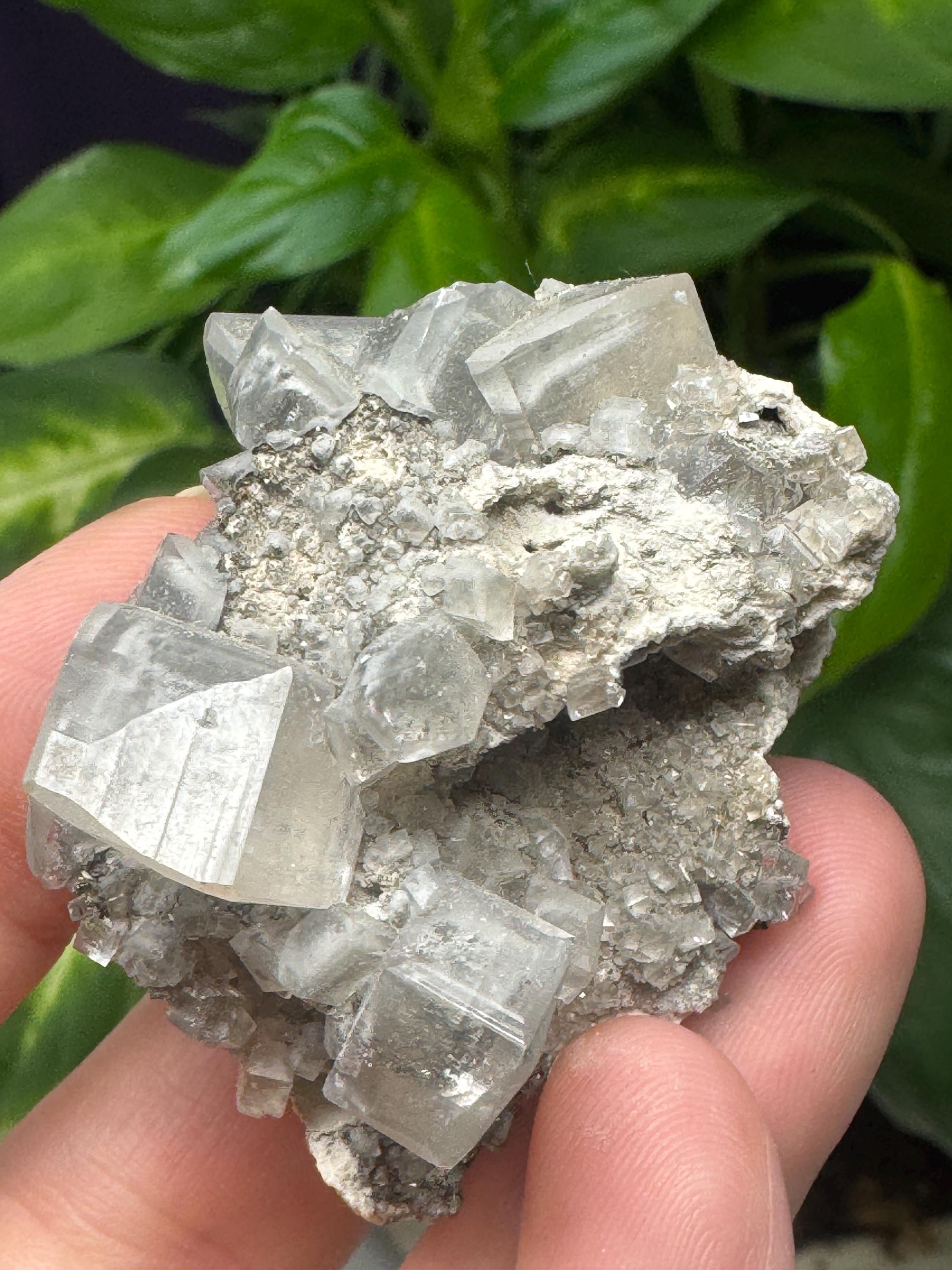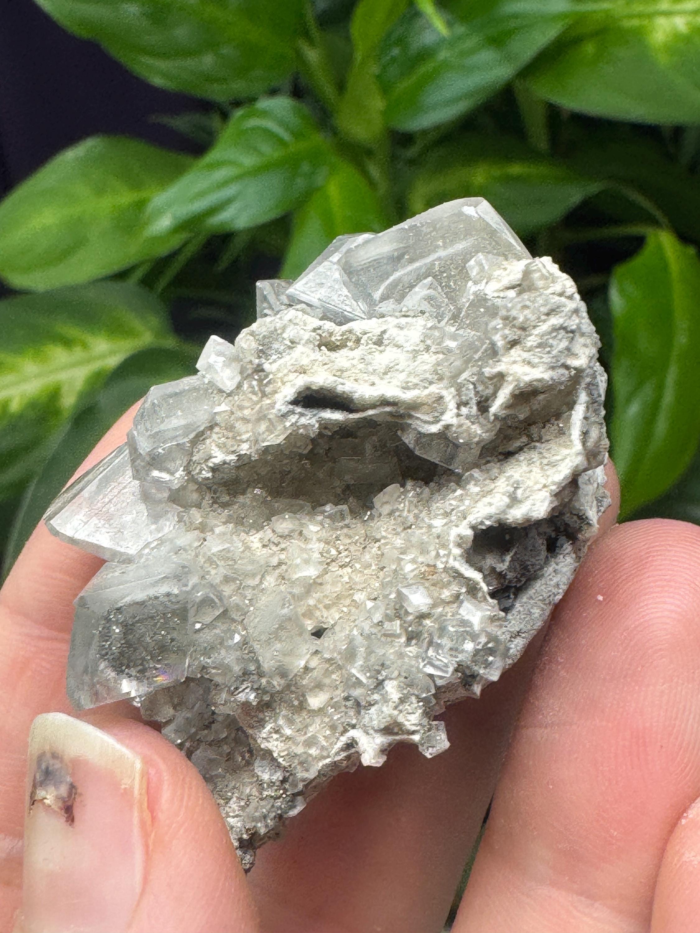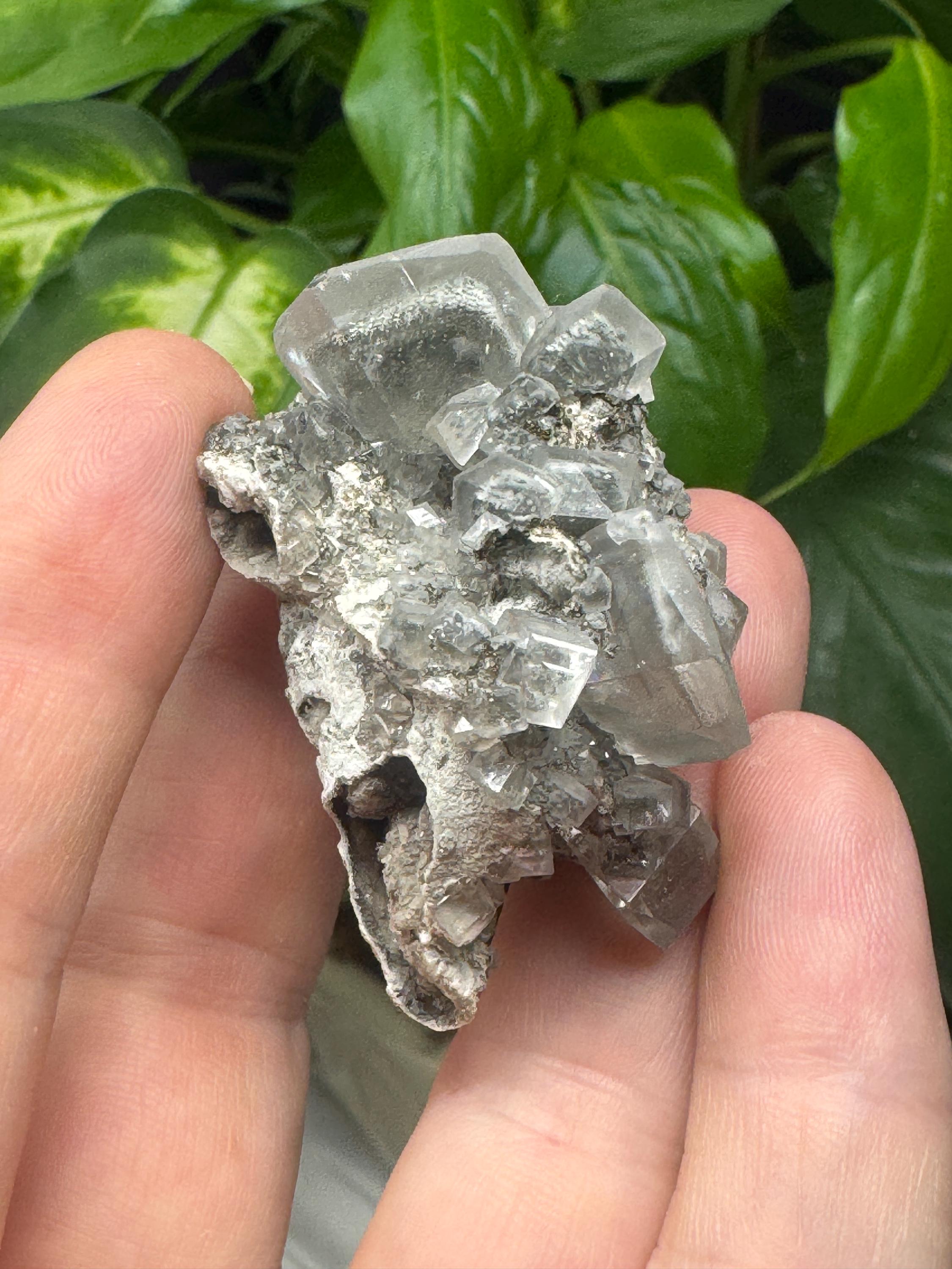 Calcite cluster with Marcasite Inclusions from Linwood Mine, Scott County, Iowa. Clear calcite crystals with Marcasite on matrix. 4.5 x 3.5cm